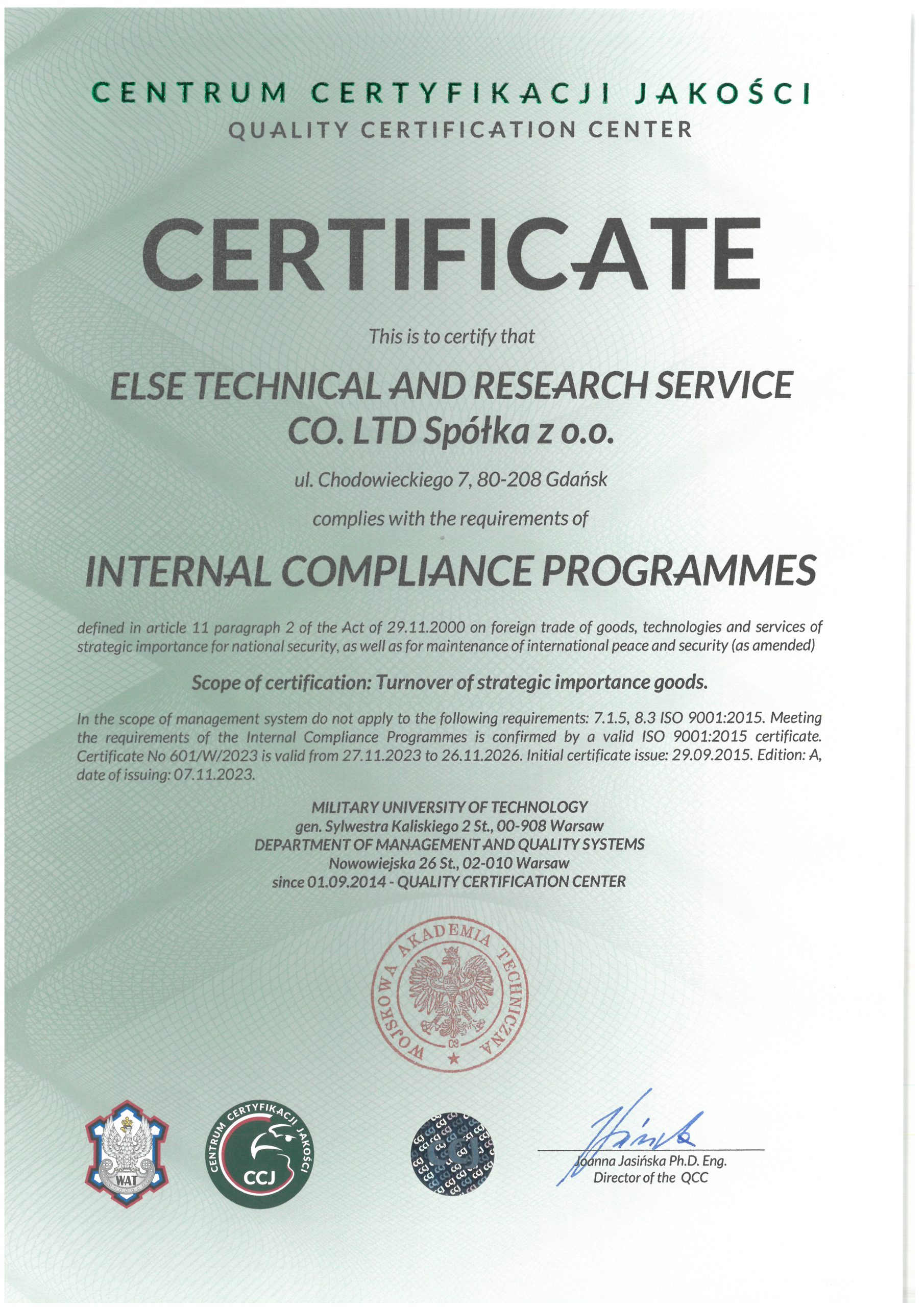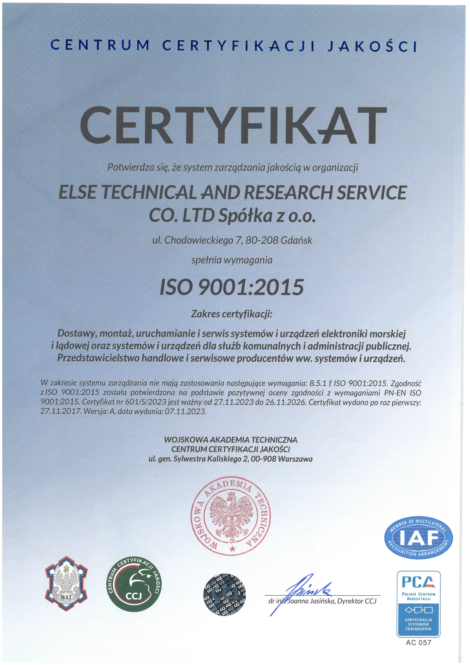 Jakość i zaangażowanie w ciągły rozwój stanowią fundament długotrwałej wizji „ELSE” Technical and Research Service Co. Sp. z o.o. Dbałość o najwyższe standardy potwierdzają liczne certyfikaty oraz akredytacje zdobyte na przestrzeni lat działalności. Dzięki temu klienci mają pewność, że każdy projekt realizujemy z pełnym zaangażowaniem, wspierani przez doświadczoną kadrę i partnerskie podejście do współpracy.